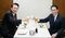 2008年2月、中国製ギョーザ中毒事件を受け開かれた関係閣僚会議に臨む福田康夫内閣の閣僚の面々。左から舛添要一厚労相、岸田文雄国民生活担当相、町村信孝官房長官、高村正彦外相(写真:共同通信社)拡大画像表示