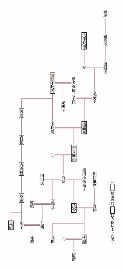 橘氏は、大王敏達(びたつ)の子孫で、左大臣となって政権を担った橘諸兄(もろえ)を祖とする。しかし藤原仲麻呂(なかまろ)と対立し、諸兄は天平勝宝(てんぴょうしょうほう)八年(七五六)に失脚、嫡子の奈良麻呂(ならまろ)は天平宝字(てんぴょうほうじ)元年(七五七)の政変で獄死したとされる。奈良麻呂の子たちも連坐したものと思われるが、末子の清友は奈良麻呂の変の直後に生まれたため、罪を赦された。