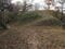 二ノ曲輪の枡形虎口。画面左上から登ってきた通路が中央で直角に折れて、画面左下へと向かっている