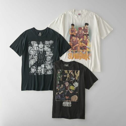 「スラムダンク」のアニメTシャツ(右上)¥33,990・「ハンター×ハンター」のアニメTシャツ¥13,090・「ナルト」のアニメTシャツ¥18,590(すべてディグディグ)
