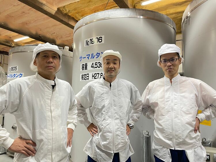 左から杜氏の遠藤英行さん、杜氏の堀越秀樹さん、上槽担当の石川清久さん。龍神酒造は杜氏2人の体制をとっている