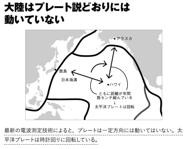 しかし、ハワイと鹿島、アラスカでの観測結果は、プレート説のとおりにはならなかったのです。大陸はプレート説どおりに動いていないのです。