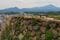 山上の天守台と伯耆大山。米子は眼下に日本海を眺める伯耆西部の要衝だ
