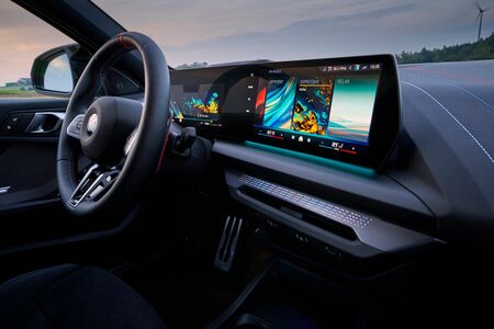 インテリアは最近のBMWと同様に、メーターパネルとナビ/エンターテイメントディスプレイをひとつに収めたカーブドディスプレイや、状況に応じて光り輝くインタラクションバーを備える