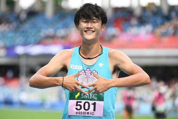 2024年9月22日、日本インカレ、男子200m決勝で優勝した鵜澤飛羽(筑波大) 写真/千葉 格/アフロ
