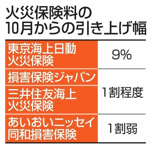 大手損保の10月からの火災保険料引き上げ幅(図表:共同通信社)