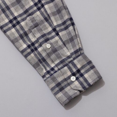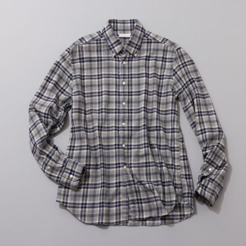 写真の一枚は、1960年代的なチェック柄を用いフランネル生地にて仕立てた新作。アメトラ的な雰囲気だがシルエットは現代的なスマート型であり、ネル生地も包まれるような柔軟さを誇る高品質な起毛コットン素材を採用する。ゆえに懐かしくありながらも古臭さはなく、大人の洒落感とリッチな色気を兼備。テーラード仕様のため、ジャストサイズのジャケットの下にも合わせても美しくキマる。