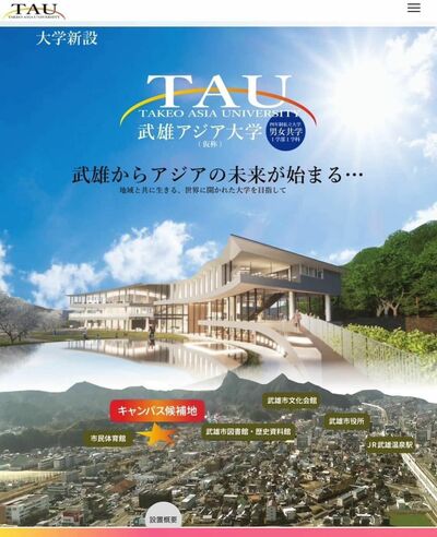 佐賀市で佐賀女子短期大学を運営する学校法人旭学園が、武雄市に4年制大学を新設することを明らかにしたのは2023年2月のことだった。その後、校名は武雄アジア大学と決まった。
