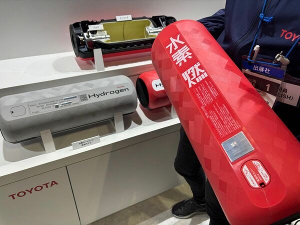 トヨタが「ジャパンモビリティショー ビズウィーク 2024」に出展した、持ち運べる「水素カートリッジ」(写真:筆者撮影)