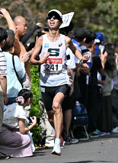 ゴール手前を力走する専大・新井友裕 写真/日刊スポーツ/アフロ