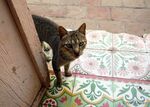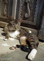 街の集会場にいた猫です。何か御用ですかと、シッポの先をゆらゆら揺らしながら、応対してくれました。