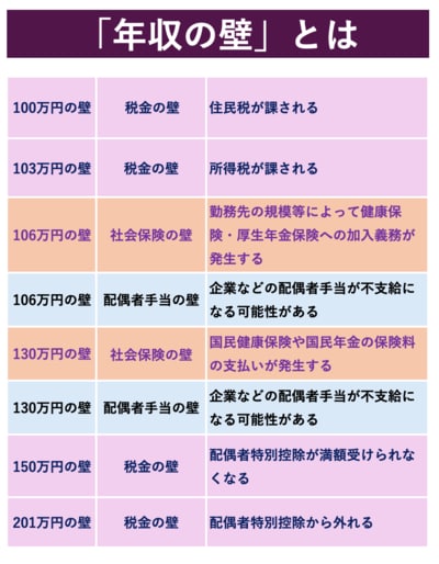 では、「103万円の壁」に象徴される「年収の壁」とは、どのようなものでしょうか。具体的に見ていきましょう。
