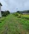 まっすぐに伸びる廃線路が草の中に残る。その先には岡山県境の山々が見える(筆者撮影)