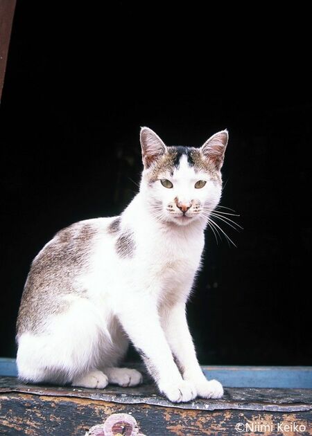 白い毛並みが主体で目が小さいこの猫はオスです。名前はカカー。おばあちゃんと二人暮らしで、とても大事にされているのを自覚し、誇りに思っている様子でした。