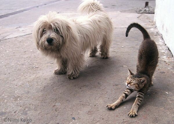 その立派な犬の話を聞いている間、犬と猫も聞き入っていました。