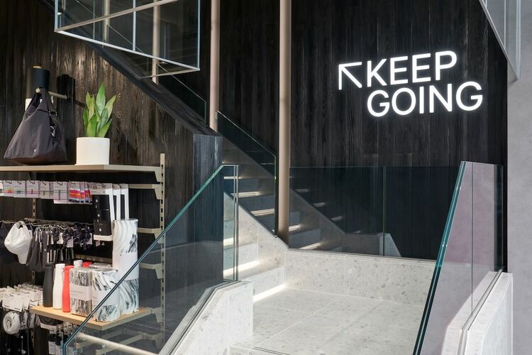 このたびオープンした青山ストア内1階では、デイリーウェアを想定したデザインに、高機能性をふんだんに取り入れたカジュアルウェアラインの「OTM(On The Move)ライン」をはじめとする、限定商品や新商品を中心に展開。2 階のリテールフロアはヨガやラン、トレーニングなどといった、さまざまなアスレティックウエアを展開し、同階のルーフトップエリアでのアクティビティと連動する品揃えとなっている。