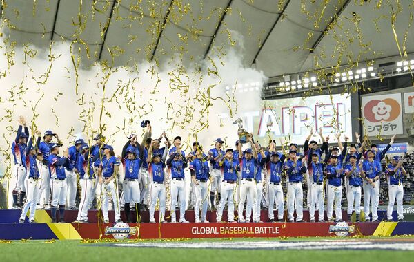 優勝を果たし、喜ぶ台湾チーム(写真:共同通信社)