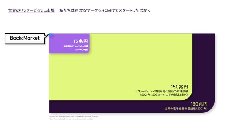 それはリファービッシュ市場がこの先、新品市場と拮抗すれば、そうなりますよね。とはいえ、BackMarketだって、新品が供給されなかったら、商売にならないじゃないですか。市場の新:古のバランスはどのくらいを考えているんですか?