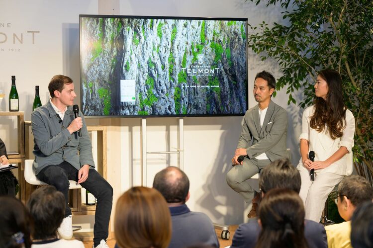 「皆さんも、森は大事だよね、とはおもっているのではないでしょうか。でも、都市で暮らしていると、じゃあ何ができるのか? 漠然としがちではないでしょうか。あるいは何もできることはない、と無力感を抱くかもしれません。でも、日々の消費活動のなかで、よりサステナブルでエシカルなものを選択するだけでも、つくり手とのつながりは生まれて、商品の流れ、価値が生まれるんです。わたしたちは、日本の木材を使う活動で、それを後押ししていますが、テルモンのシャンパーニュを選ぶことも同じことではないかとおもいます。世界中でこういうことが起きて、今、一人が一本の木を植えれば、それは50年後、100年後には100億本の木になっているかもしれないのですから」