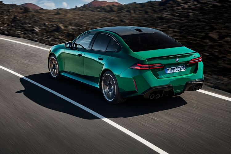 また、今回のM5は、Mモデル専用の8速Mステップトロニック・トランスミッションのハウジングに電気モーターを組み込んでいる。このモーターはBMWの特許技術 プリ・ギアリングによって450Nmものトルクを発揮するという。BMWはこれは6気筒ツインターボエンジン相当のトルクであるといい、この2つのパワートレインの力で、727PS(535kW)の最高出力と1,000Nmの最大トルクを誇る。四輪駆動システム「M xDrive」によってパワーを路面に伝達。結果、22.1kWhのバッテリーを搭載し、乾燥重量2,435kg (DIN)のM5は、静止状態から3.5秒で時速100kmにまで加速し、時速80kmから120 km/hまでは2.2秒で加速する(いずれも欧州仕様車の値)。