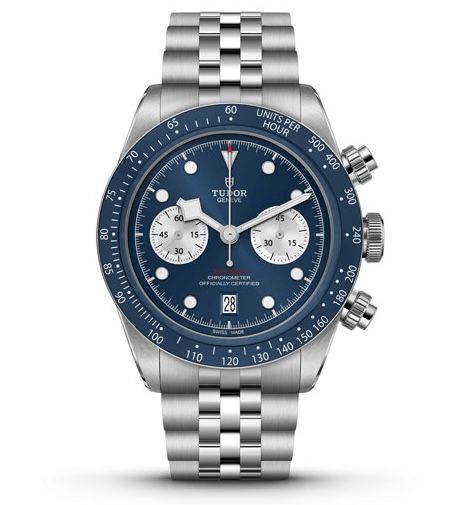 41mmのスチールケースに収められた『ブラックベイ クロノ "ブルー"』。チューダーの伝統と革新が融合した逸品。