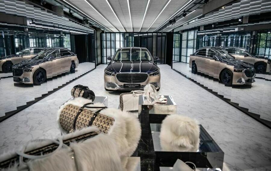 インテリアは日本古来の焼杉からインスパイアされたという黒塗りの木を基調とした空間。中央部分には、インテリアの要となる黒大理石の暖炉と金箔のアートが配されている。