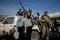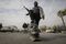 ダマスカスで、アサド大統領の父、故ハーフィズ・アル=アサド元大統領の破壊された胸像を踏みつける反政府軍の戦闘員(写真:AP/アフロ)
