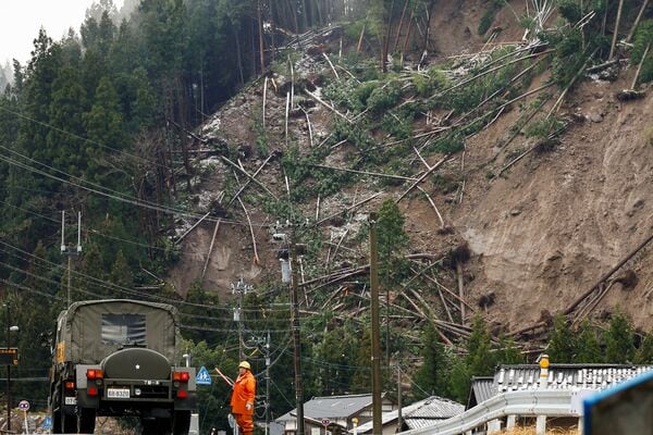 崩壊し山肌が剥き出しに。石川県輪島市(写真:ロイター/アフロ)