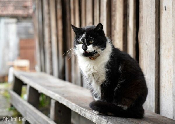 三角形の公園越しに、猫がオールセインツ教会を見つめていました。