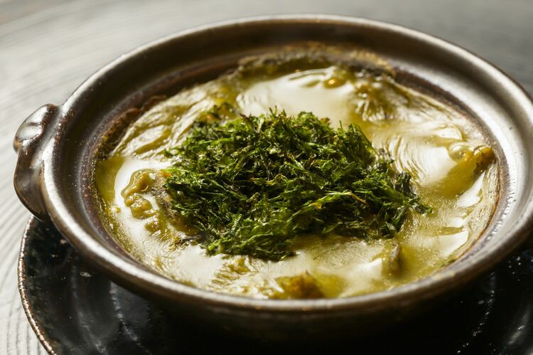 一貫して謙虚な阿南さんの態度についうっかりしていたと気づいたのは二品目に出てきた小鉢料理ひとつ「よもぎの山椒煮」を食べたときだ。