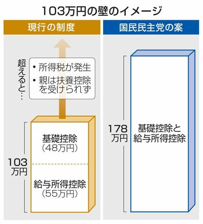 年収103万円という壁の金額は平成初期の1995年から変わっておらず、国民民主党はそこから30年分の企業の最低賃金の上昇分を反映した178万円への引き上げを主張している。ただし、例えば「基礎控除を75万円引き上げて123万円にする」など、どの控除をどれだけ引き上げるか、という具体策にまでは踏み込んでいない。