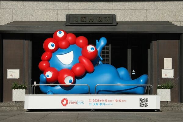 大阪市役所前のミャクミャク(写真:日刊工業新聞/共同通信イメージズ)