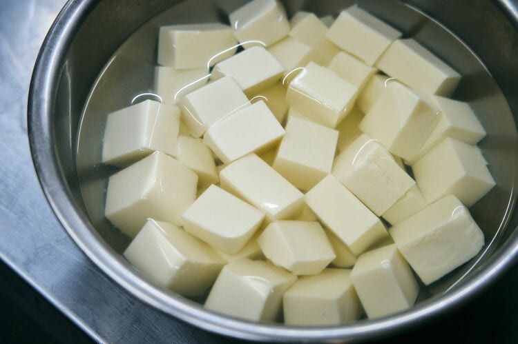 1. 豆腐をボウルに入れ、使用直前まで水に浸しておく。