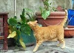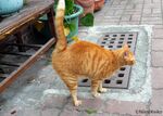 包装資材を扱う店の猫です。猫の爪とぎからダンボールを保護するカバーを巻いていますが、あまり効果がないとのこと。「爪を研ぐっていうのは、猫の気ばらしになるようだから、いいんじゃないの?」と、店の主人は、包装紙を抱えて移動しながら、話してくれました。