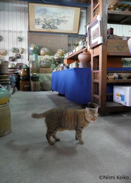 この陶工房は陶芸家の姉妹が運営しています。地域猫の保護活動にも力を入れていて、ミャオミャオとミイミイのほかにも、自宅に保護した猫が暮らしているとのことでした。
