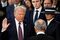 正午少し前、トランプ大統領は緊張した表情で右手を上げ、「私、ドナルド・ジョン・トランプは合衆国大統領の職務を忠実に遂行し、全力を尽くして合衆国憲法を維持、保護、擁護することを厳粛に誓う」と宣誓し、会場は拍手に包まれた。ちなみにこの時、慣例である左手を聖書にのせる動作をとらなかったことが「型破りだ」との議論も呼んでいる。