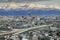 立山連峰をバックに走行する北陸新幹線の車両(富山市、写真:共同通信社)