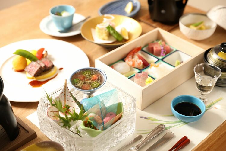 夕食は天然鯛をはじめ、瀬戸内の食材を使う会席料理。料理にあう地酒も豊富に揃う。朝食は和洋バイキング。プランによって宴会場あるいは個室の食事会場が利用できる。また「風待ちレストラン」ではランチ営業を行なっているので、連泊や日帰り利用に便利だ。