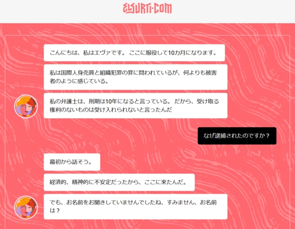 実際に会話を進めてみると、エヴァは「国際人身売買と組織犯罪の罪に問われているが、私はむしろ被害者だ」「犯罪で得た資産はない」と釈明するだけでなく、逮捕に至った状況について、「経済的な不安から仕事を探していたときに、不審な人物から仕事を頼まれた」「その人に『何も問題ないから』と言われて、アスンシオンからヨーロッパの都市までコカインが詰まったスーツケースを運ばされた」と克明に語ってくれる。