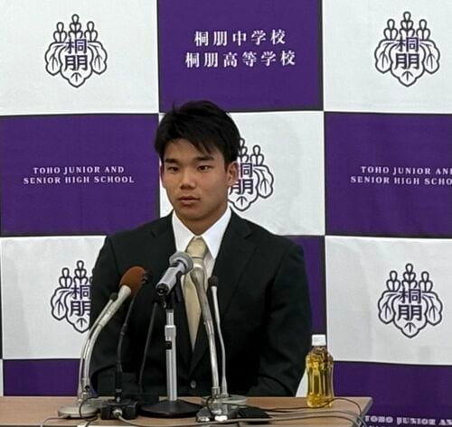 この日の会見には約70人の報道陣が駆けつけた。高い注目を集めた要因は、2024年度も東京大学に2桁の合格者を出す屈指の進学校から大学に進学せず、メジャーへ挑戦するということだけではない。