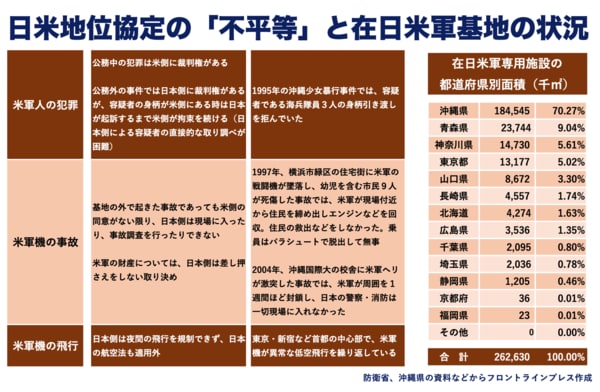 物資や労務などを優先的に米軍に提供することも約束。さらに米軍の兵士や軍属、その家族らの犯罪に関しては、日本側に裁判権がないという不平等な内容でした。