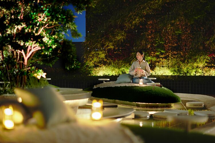夕食後から就寝前までのナイトタイムは、OMOベースで開催されるイベント「満チル夜のひととき」を堪能。空中庭園で香り豊かなハーブティーとともにレコード鑑賞などが楽しめる。20時30分〜23時、無料(OMOカフェ&バルのメニューは有料)。