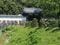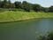 吹上の巨大な水堀と土塁。土塁上部は石垣となっている(いわゆる鉢巻石垣)