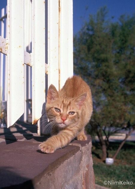 砂浜に面したリゾートホテルにも猫たちが暮らしています。太陽の光を浴びてまだ眠そうにしている子猫のところへ、ミルクを持ってきた女性がいました。「牛乳を与える宿泊客がいるから、牛乳を飲まないように、子猫用のミルクを持ってきているの」。