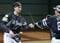 ソフトバンク宮崎キャンプ 。ブルペンでの投球練習を終え、捕手とタッチする上沢直之投手(写真:共同通信社)