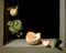 《マルメロ、キャベツ、メロンとキュウリのある静物》はその6点の中で最高傑作といわれる作品。出窓の縁のような空間にマルメロとキャベツが吊り下がり、その横にメロンとキュウリが置かれている。背景の黒は各モチーフの存在感を際立たせるとともに、厳粛で静かな空間を作り上げている。