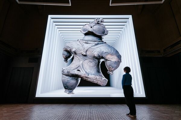 ※イマーシブシアター会場写真 重要文化財 遮光器土偶 青森県つがる市木造亀ヶ岡出土 縄文時代(晩期)・前1000~前400年 東京国立博物館蔵