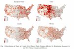 図2は、ざっくりいうとそれぞれの国・共同体の報復関税の影響度をアメリカの郡ごとに色分けしたもので、赤色が濃ければ濃いほど影響度が大きい。中国などは一目瞭然だが、明らかにトランプ支持者が多い中西部がより影響を受けるような関税のかけ方をしている。