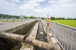 近くに設置された案内板では、片貝川をくぐって水が送られる仕組みを説明している