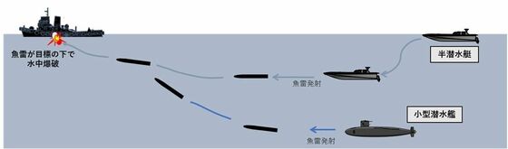 図2 水上艦艇を魚雷攻撃する潜水艦(艇)のイメージ